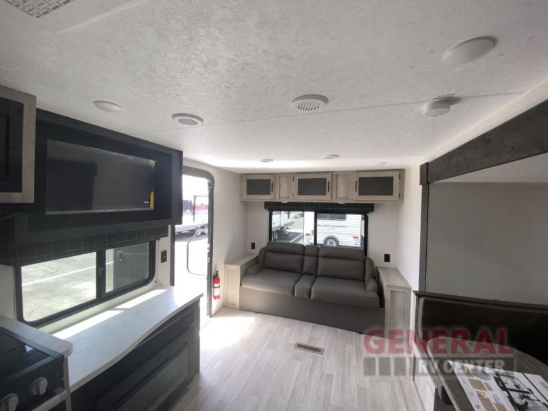 The KZ Sportsmen SE 251RSSE features one slide-out, providing extra room for relaxation and entertainment. Inside, you'll find a well-appointed interior with a fully equipped kitchen, cozy sleeping arrangements, and a functional bathroom. The thoughtful layout ensures that everyone has their own space, while the high-quality finishes and modern amenities create a welcoming atmosphere.