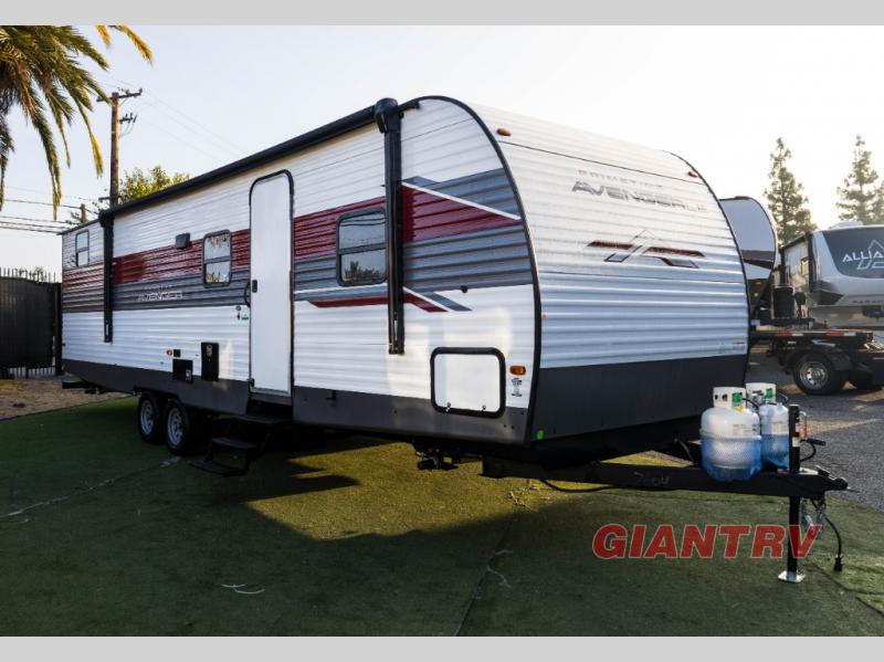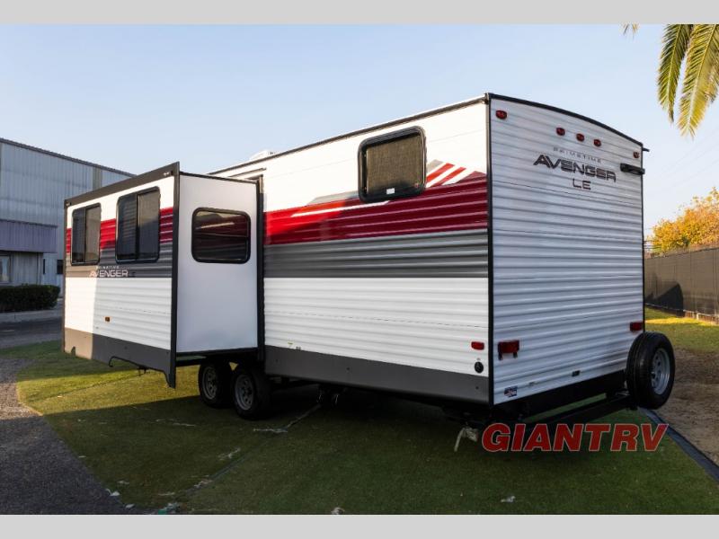 The Avenger LE 28QBSLE features a single slide-out, which significantly enhances the living area, providing extra room for dining and lounging. The intelligently designed interior includes a fully equipped kitchen, a cozy dinette, and a spacious living area, all crafted with high-quality materials and finishes. The sleeping arrangements are versatile, with a master bedroom, bunk beds, and convertible furniture, ensuring a restful night for everyone on board.