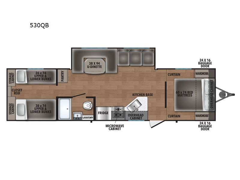 The Shasta i-5 Edition 530QB features a well-designed floor plan that includes one slide-out, enhancing the living space to provide a more open and inviting environment. The rear bunk room is a standout feature, offering a dedicated sleeping area that is perfect for children or guests. The thoughtful layout ensures privacy and convenience, with additional sleeping arrangements available in the main living area. Every detail of this travel trailer is crafted to provide a home-like feel, ensuring you have all the comforts you need while on the road.