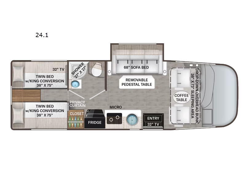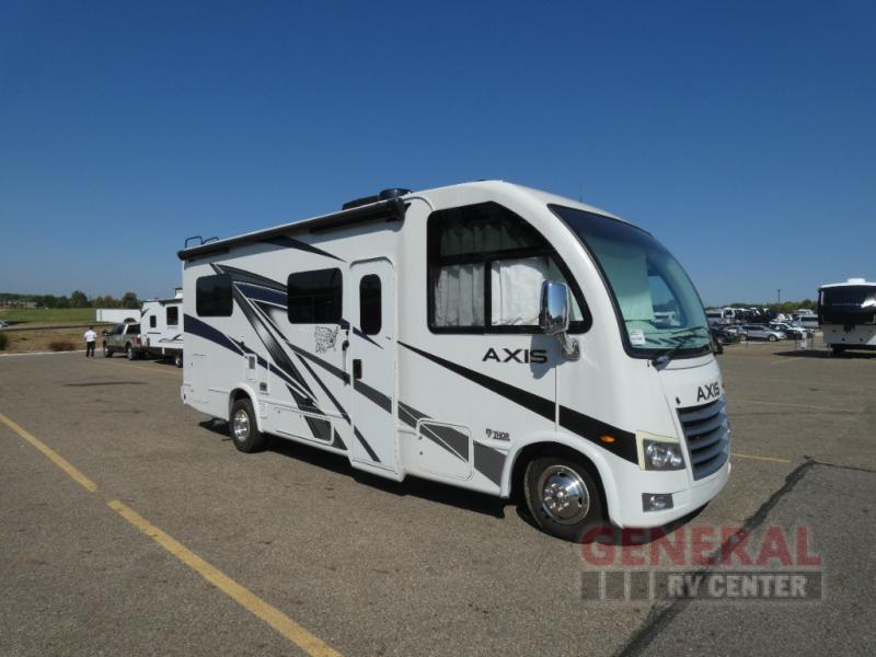 Measuring 21 feet in length, the Axis 24.1 is compact yet spacious, featuring a single slide-out that expands your living area, providing ample room for relaxation and entertainment. Inside, you'll find sleeping accommodations for up to five people, making it ideal for family trips or getaways with friends. The thoughtfully designed interior includes a well-equipped kitchen, a cozy dining area, and a comfortable sleeping space, ensuring everyone travels in style and comfort.