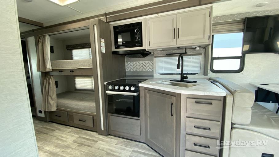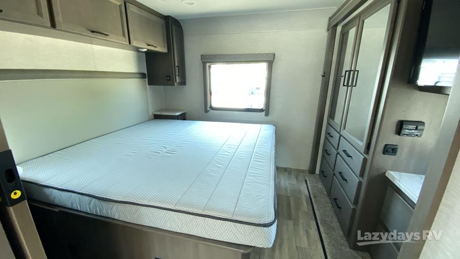 The Freedom Traveler 32A features a thoughtfully designed interior, enhanced by a single slide-out that expands the living space, providing ample room for relaxation and entertainment. With a length of 28 feet, this motorhome is perfectly sized for both maneuverability and spaciousness, ensuring a comfortable journey whether you're navigating city streets or exploring the open road. The interior is meticulously crafted with high-quality materials and finishes, offering a sophisticated ambiance that rivals any luxury hotel suite.