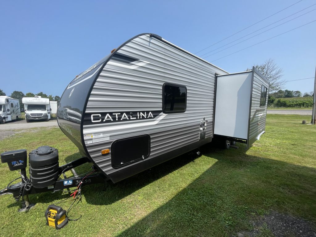 The Coachmen Catalina 283EPIC features a single slide-out, enhancing the living area to create a spacious and inviting environment. Inside, you'll find accommodations for up to four people, ensuring a comfortable stay for small families or couples. The interior is thoughtfully designed with modern amenities and high-quality finishes, providing a home-like atmosphere on the road. The well-equipped kitchen, cozy sleeping quarters, and a stylish bathroom make this travel trailer a true home away from home.