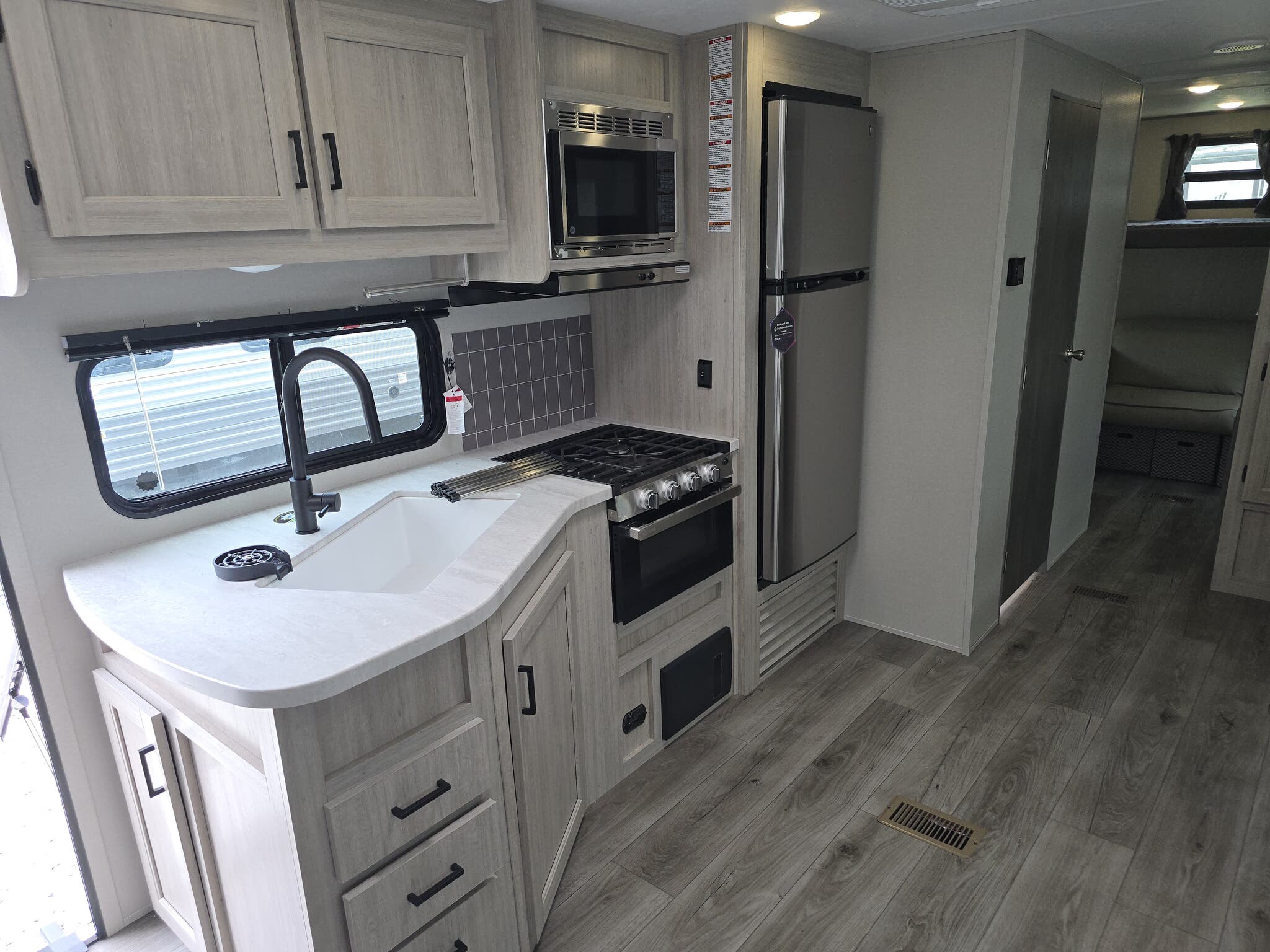 The Catalina Legacy Edition 293QBCK is engineered to accommodate up to 11 sleepers, providing versatile sleeping arrangements to suit families and groups of varying sizes. The intelligently designed floor plan includes a master bedroom, a versatile bunkhouse, and convertible sleeping areas, ensuring everyone enjoys a restful night's sleep. The interior is elegantly appointed with high-quality finishes and modern amenities, creating a home-like ambiance that enhances your travel experience.