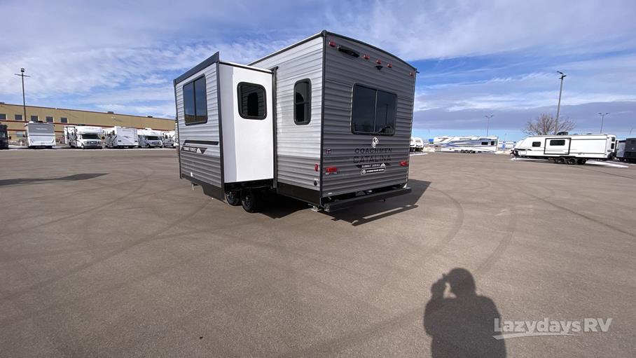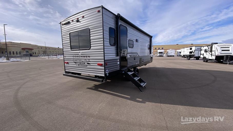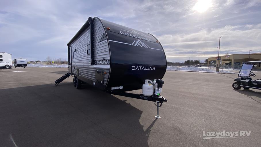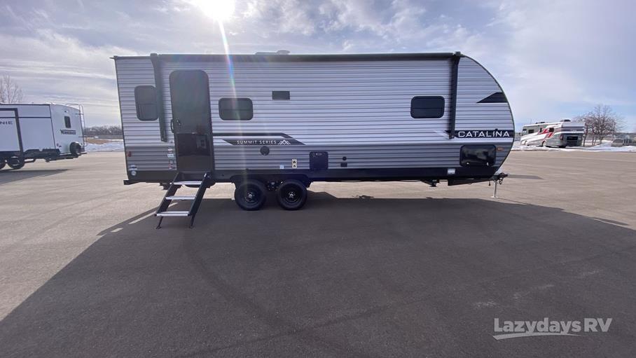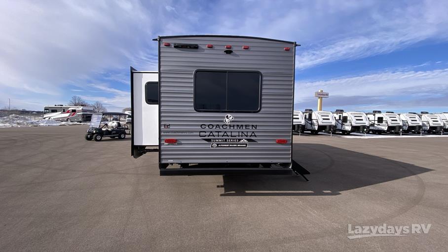 Inside, the Catalina Summit Series 8 is thoughtfully crafted to accommodate up to four sleepers, making it an ideal choice for small families or couples seeking a retreat. The interior layout maximizes space and utility, featuring a well-appointed kitchen, a cozy dinette, and a comfortable sleeping area. The high-quality materials and finishes throughout the trailer reflect Coachmen's commitment to excellence, providing a luxurious yet practical environment for your travels.