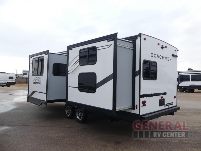 The Apex Ultra-Lite 241BHS features two convenient slide-outs, maximizing your living space and providing a roomy interior that can comfortably sleep up to four people. Whether you're traveling as a family or a couple, you'll appreciate the thoughtful layout and design that includes a cozy sleeping area, a fully equipped kitchen, and a comfortable dining space. The modern amenities and stylish finishes ensure that you have everything you need for a relaxing and enjoyable journey.