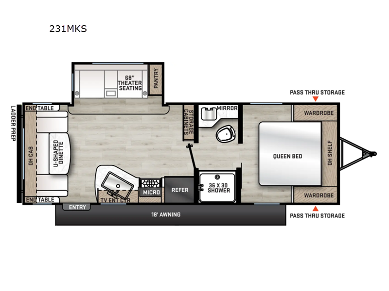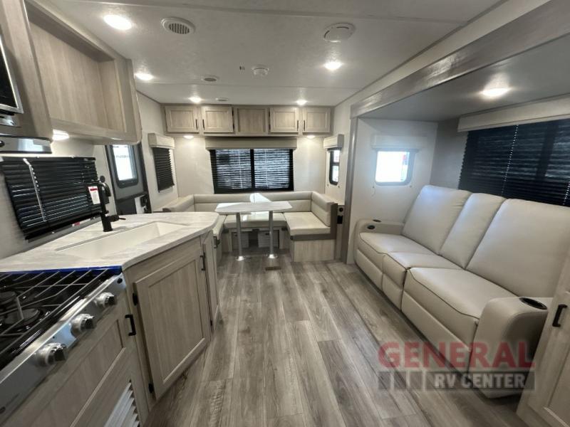 Designed to accommodate up to four people, the Catalina Summit Series 8 231MKS is ideal for small families or couples seeking a cozy getaway. The intelligently designed floor plan maximizes space and utility, featuring a well-equipped kitchen, a comfortable sleeping area, and a stylish bathroom. The interior is crafted with high-quality materials and finishes, ensuring durability and a touch of elegance. The thoughtful layout ensures that every inch of space is utilized efficiently, providing you with all the comforts of home while on the road.