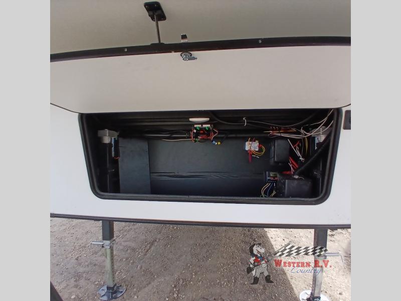 Step inside and be greeted by a spacious interior, thanks to its three slide-outs that expand your living space effortlessly. Whether you're traveling with family or friends, this RV comfortably sleeps four, making it ideal for cozy getaways or extended road trips. The well-appointed kitchen, complete with modern appliances, ensures you can whip up your favorite meals no matter where you are. The inviting living area, with plush seating and a large entertainment center, is perfect for relaxing after a day of exploration.