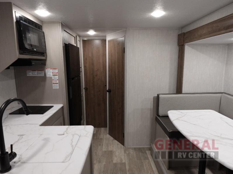 Measuring approximately 22 feet in length, the Clipper 22BHSR is compact enough for easy towing yet spacious enough to provide all the amenities you need. Inside, you'll find a cozy sleeping arrangement that comfortably accommodates five, ensuring everyone has a restful night's sleep. The interior is thoughtfully designed with a focus on maximizing space and functionality, featuring a well-equipped kitchen, a comfortable dining area, and a modern bathroom.