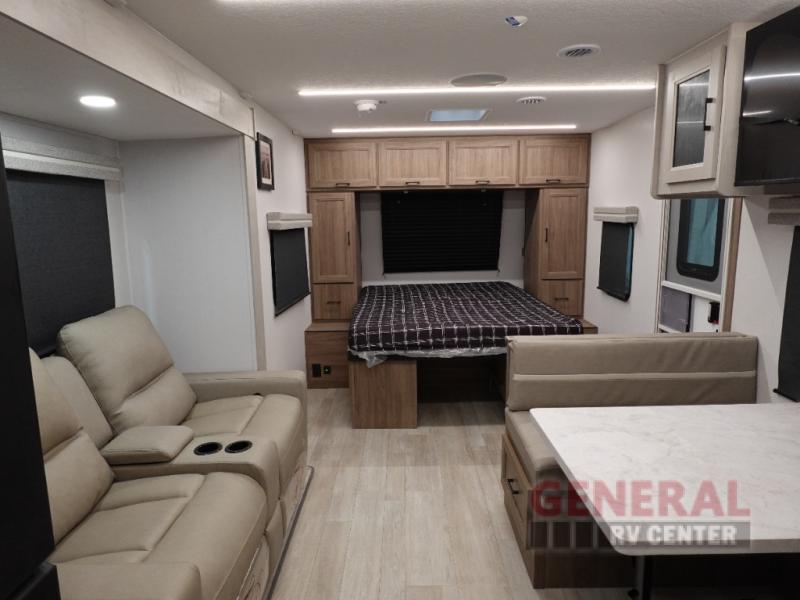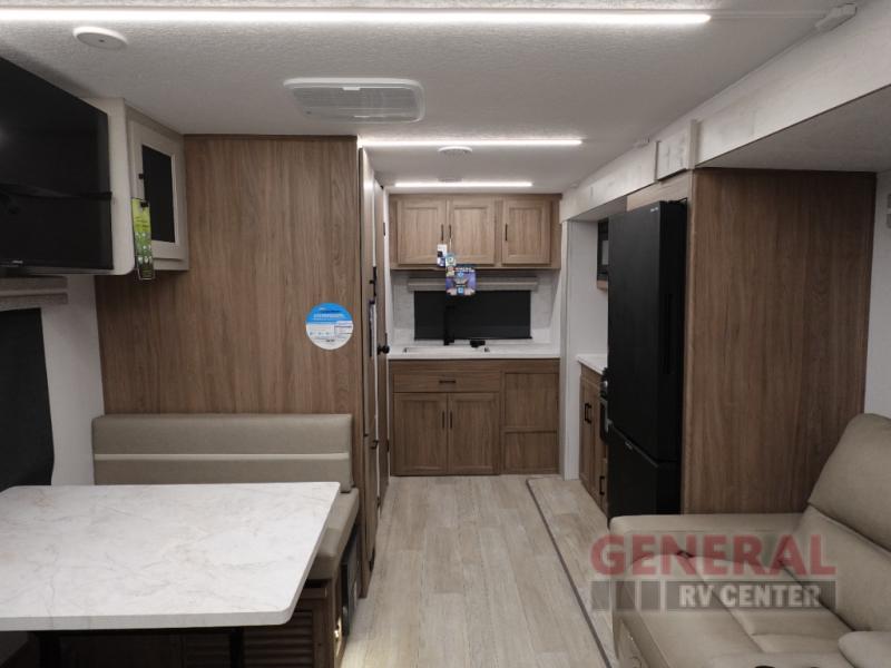 The Freedom Express Ultra Lite 22MLS features a single slide-out, which significantly enhances the living space, providing ample room for relaxation and entertainment. This model comfortably sleeps up to four individuals, making it an ideal choice for small families or couples seeking a cozy retreat. The interior is thoughtfully designed with high-quality materials and finishes, ensuring durability and style. The well-equipped kitchen, complete with modern appliances, allows for convenient meal preparation, while the comfortable sleeping quarters promise restful nights.