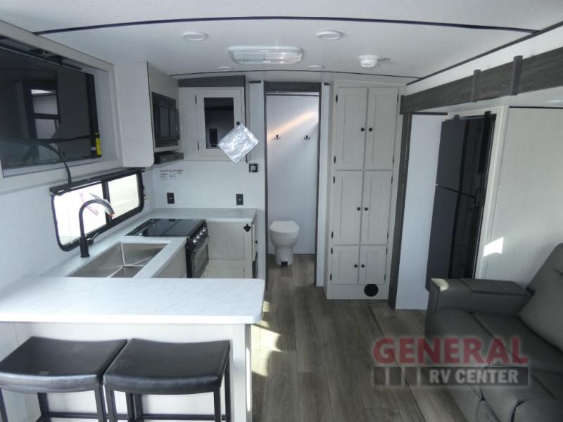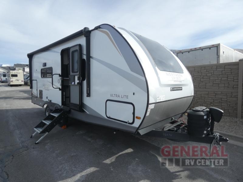 Measuring approximately 21 feet in length, the Northern Spirit Ultra Lite is compact yet spacious, featuring a single slide-out that expands your living area, providing ample room to relax and unwind. Despite its lightweight construction, weighing just 2,411 kilograms, this travel trailer is built to last, ensuring you can explore with confidence. The thoughtfully designed interior maximizes every inch, offering a comfortable sleeping arrangement for two, making it perfect for romantic getaways or solo adventures.