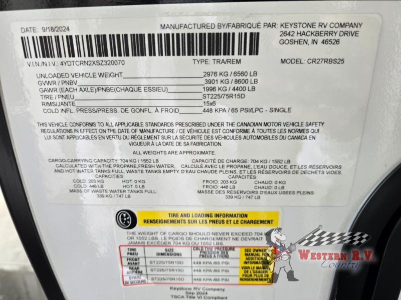 Measuring 27 feet in length, the Cruiser Aire CR27RBS is compact enough for easy maneuverability while still offering all the amenities you need for a memorable trip. Whether you're exploring the great outdoors or enjoying a weekend getaway, this travel trailer is your ticket to a seamless and enjoyable journey. Don't miss the opportunity to own a 2025 CrossRoads RV Cruiser Aire CR27RBS and make every trip an unforgettable experience.