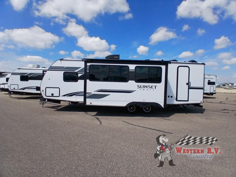 Introducing the 2025 CrossRoads RV Sunset Trail SS279BH Travel Trailer, a perfect blend of luxury and functionality designed for the discerning traveler. This meticulously crafted RV spans 32 feet in length, offering ample space for family adventures or a serene getaway. With a dry weight of approximately 3,175 kilograms, it is engineered for easy towing without compromising on stability or safety.