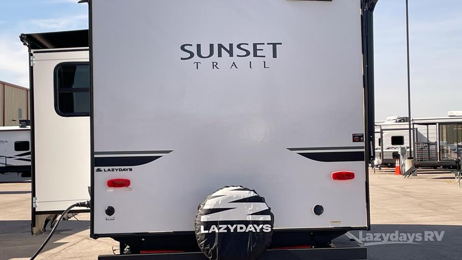Measuring a comfortable 32 feet in length, the Sunset Trail Super Lite is easy to tow and maneuver, yet spacious enough to accommodate all your needs. Inside, you'll find a well-appointed living area with modern amenities that make life on the road a breeze. The kitchen is equipped with everything you need to whip up your favorite meals, while the cozy seating area is perfect for unwinding after a day of exploring. The bedroom offers a peaceful retreat with ample storage for all your belongings.