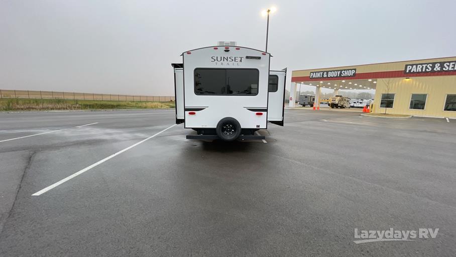 Weighing in at just 3,568 kilograms, this travel trailer is engineered for efficiency and ease of towing, allowing you to hit the road with confidence. The lightweight design doesn't compromise on durability or features, ensuring a robust and reliable travel companion for years to come. Inside, you'll find a well-appointed kitchen, a cozy living area, and a comfortable sleeping space, all crafted with high-quality materials and thoughtful design. Whether you're cooking a meal or enjoying a movie night, the Sunset Trail Super Lite provides a welcoming environment for all your adventures.