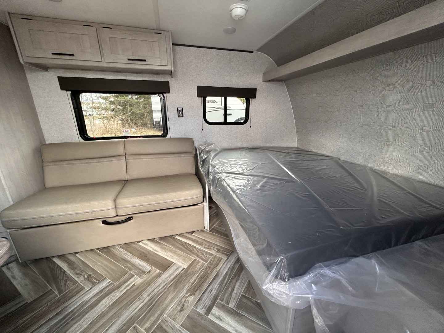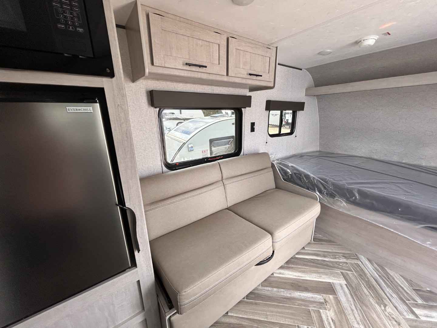 Inside, you'll find a well-thought-out layout that comfortably sleeps up to four people, making it perfect for small families or couples seeking a getaway. The interior is designed with modern amenities and stylish finishes, ensuring you have all the comforts of home on the road. The kitchen is equipped with everything you need to whip up delicious meals, while the cozy sleeping areas promise a restful night's sleep after a day of adventure.