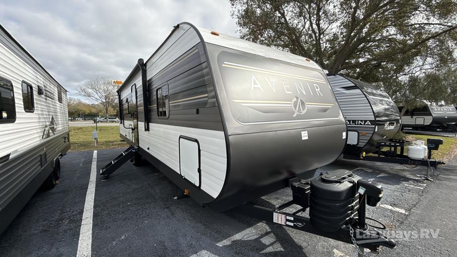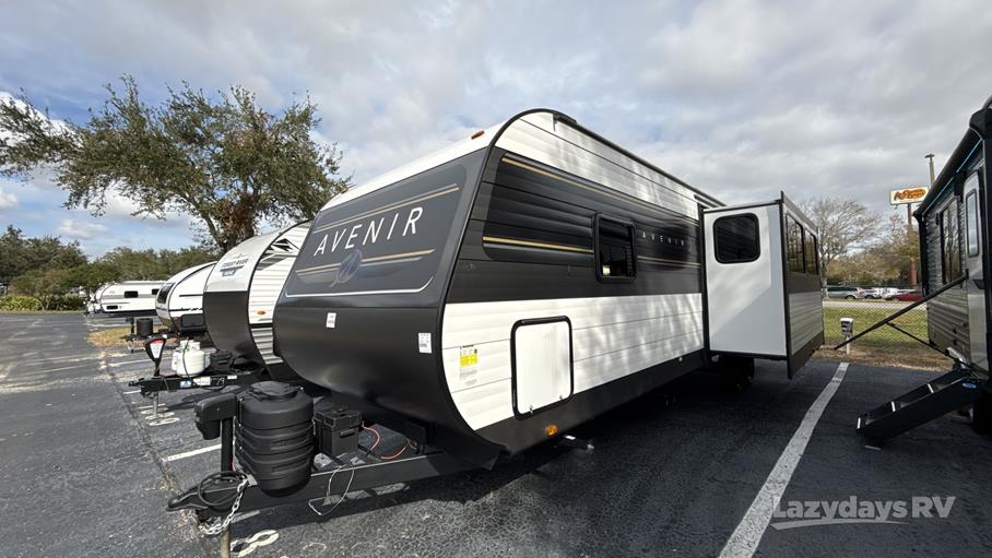 The Avenir 32BH features one strategically placed slide-out, expanding the interior space to create a welcoming and open atmosphere. Inside, you'll find a thoughtfully designed layout that maximizes every square meter, ensuring comfort and convenience. The travel trailer boasts a well-appointed kitchen, complete with modern appliances and ample storage, making meal preparation a breeze. The living area is designed for relaxation, featuring plush seating and state-of-the-art entertainment options, perfect for unwinding after a day of exploration.