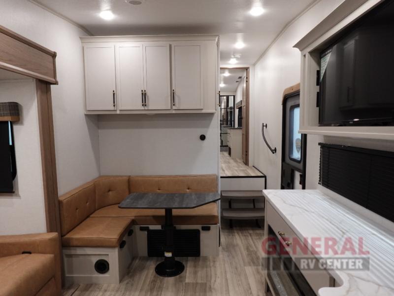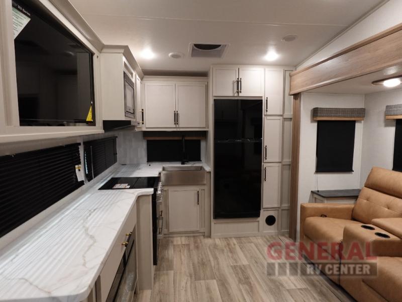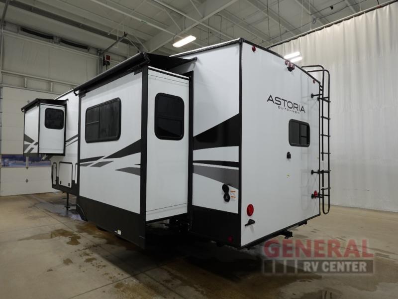 Step inside, and you'll find a cleverly designed interior featuring one slide-out that maximizes your living space. The Astoria 260RK comfortably sleeps three, making it ideal for small families or couples looking to hit the road. The rear kitchen layout is a dream for any cooking enthusiast, offering plenty of counter space and modern appliances to whip up your favorite meals. Whether you're parked by a serene lake or nestled in the mountains, the panoramic windows ensure you never miss a view.