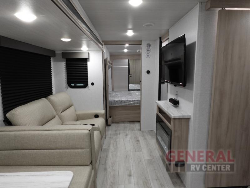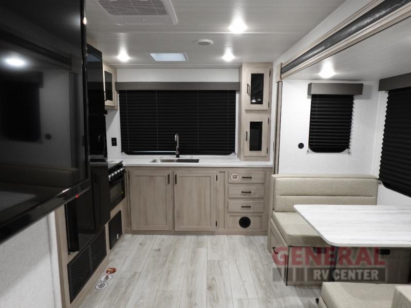 Inside, you'll find a thoughtfully designed layout that comfortably sleeps up to four people, ensuring restful nights after days filled with exploration. The well-appointed kitchen, complete with modern appliances and generous counter space, invites you to prepare delicious meals with ease. The cozy living area, enhanced by the slide-outs, provides a welcoming space to relax and unwind, whether you're enjoying a quiet evening or entertaining guests. Every detail of the Della Terra 263RK has been crafted to enhance your travel experience, from the elegant finishes to the smart storage solutions.