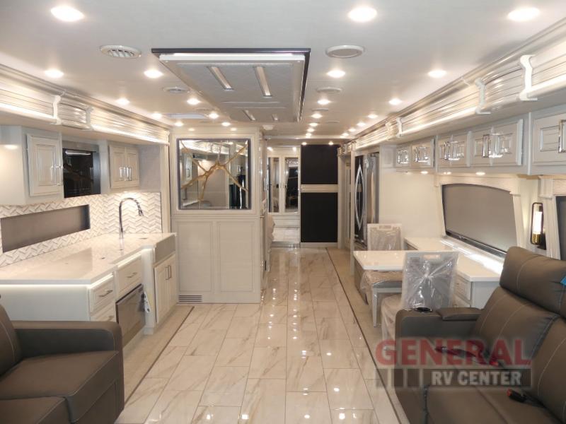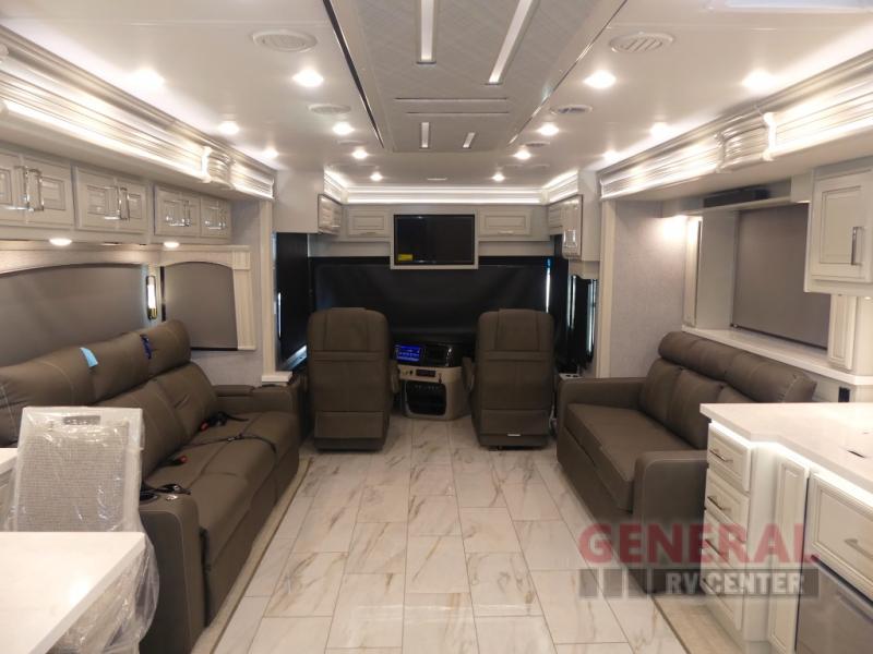 This RV is designed to sleep four comfortably, making it perfect for family getaways or a road trip with friends. The interior is all about luxury and convenience, with a layout that maximizes space and comfort. Imagine waking up in a plush bed, brewing a fresh cup of coffee in your fully-equipped kitchen, and enjoying breakfast with a view from your spacious living area.