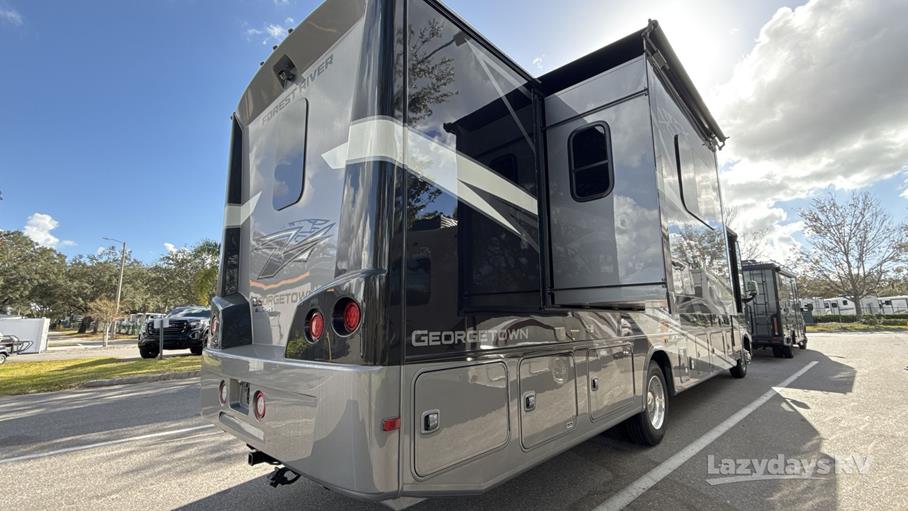 Introducing the 2025 Forest River Georgetown 5 Series 36F5 Class A motorhome, a pinnacle of luxury and functionality for the discerning traveler. This exquisite RV, measuring an impressive 33 feet in length, is designed to offer unparalleled comfort and convenience on the road. With its sleek exterior and modern design, the Georgetown 36F5 is sure to turn heads wherever your adventures take you.