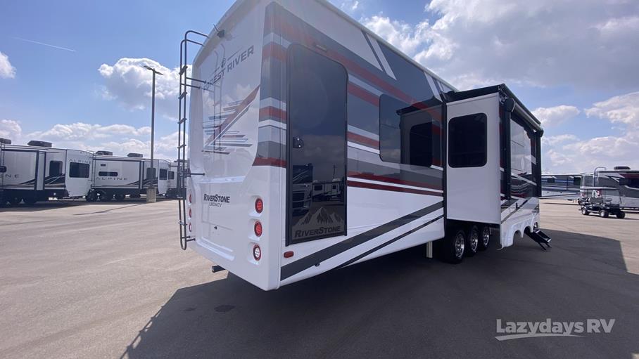 Introducing the 2025 Forest River RiverStone 44DBL Fifth Wheel, a pinnacle of luxury and innovation in the world of recreational vehicles. This exceptional RV is designed for those who seek the perfect blend of comfort, style, and functionality. With its impressive length of 37 feet, the RiverStone 44DBL offers ample space for both relaxation and entertainment, making it an ideal choice for extended road trips or full-time living.