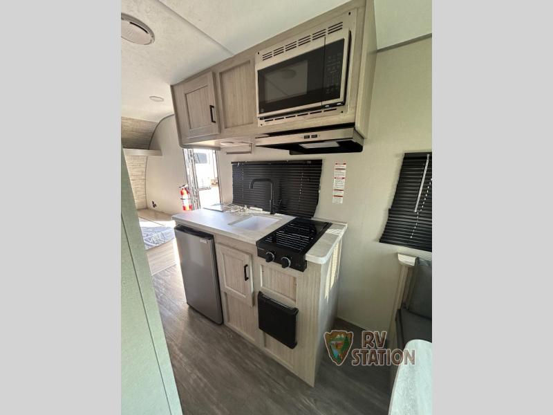 Inside, you'll find a cozy setup that can comfortably sleep up to four people, making it perfect for family getaways or a trip with friends. The smart layout maximizes space, offering a comfy sleeping area, a functional kitchenette, and a compact dining space that doubles as a lounge area. Whether you're cooking up a storm or enjoying a quiet evening indoors, the Aurora Light 15RDX has got you covered with all the essentials.