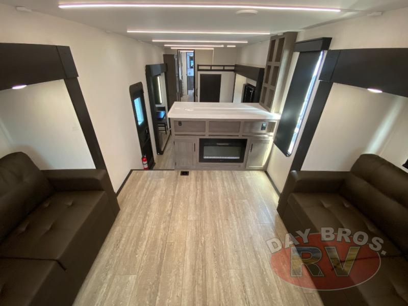 Designed to accommodate up to six occupants, the Arctic Wolf Suite 3950 features five strategically placed slide-outs, maximizing interior space and enhancing the overall living experience. The thoughtfully designed floor plan includes a spacious living area, a fully equipped kitchen, and a comfortable sleeping arrangement, making it an ideal choice for families or groups seeking adventure without sacrificing the comforts of home. The high-quality materials and modern finishes throughout the interior exude sophistication and style, creating an inviting atmosphere for all who enter.