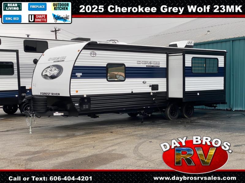 Discover the ultimate travel companion with the 2025 Forest River RV Cherokee Grey Wolf 23MK Travel Trailer. Designed for adventurers and families alike, this sleek and modern RV offers the perfect blend of comfort and functionality. With a spacious slide-out, it expands to provide ample living space, ensuring you and your loved ones can relax in style. Measuring approximately 24 feet in length, this travel trailer is compact enough for easy towing yet spacious enough to accommodate your needs.