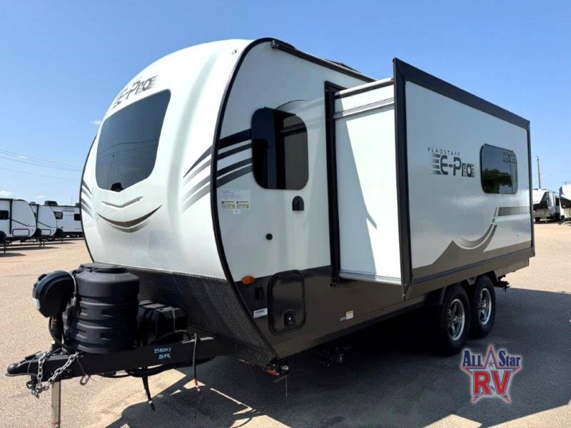 Introducing the 2025 Forest River RV Flagstaff E-Pro E20FK Travel Trailer, a perfect blend of modern design and practicality for the discerning traveler. This meticulously crafted travel trailer is designed to offer comfort and convenience, making it an ideal choice for both weekend getaways and extended road trips. With its sleek design and efficient use of space, the E20FK is a testament to Forest River's commitment to quality and innovation.