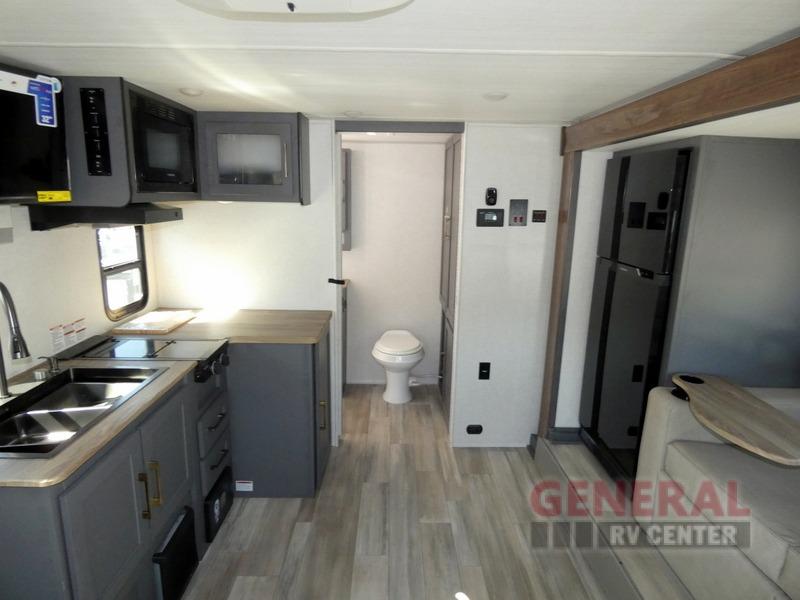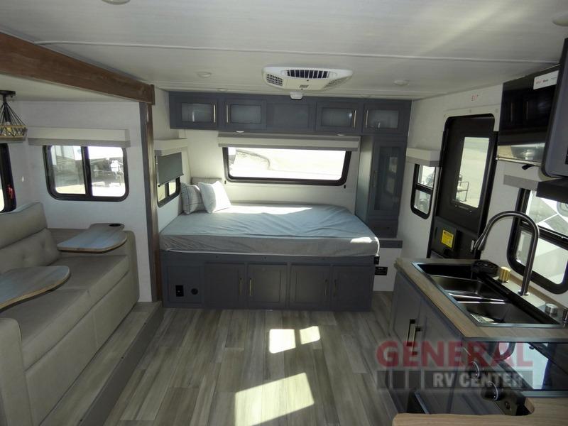Step inside to find a thoughtfully designed interior that maximizes space and functionality. The single slide-out expands the living area, providing ample room to relax and unwind after a day of exploration. The IBEX 16MKS comfortably sleeps up to three people, offering a cozy sleeping arrangement that ensures restful nights under the stars. The modern kitchen is equipped with all the essentials, allowing you to prepare delicious meals on the go. With high-quality finishes and smart storage solutions, this travel trailer is as stylish as it is practical.