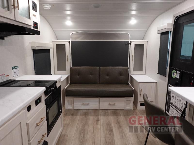 Weighing in at approximately 1,936 kilograms, the R Pod RP-197 is easy to tow, making it an ideal choice for both seasoned RV enthusiasts and newcomers alike. Its lightweight design doesn't compromise on features; inside, you'll find a well-appointed living space complete with modern amenities. The interior is thoughtfully designed to maximize space and functionality, ensuring you have everything you need for a comfortable stay. From the fully equipped kitchenette to the inviting sleeping area, every detail is crafted with your comfort in mind.