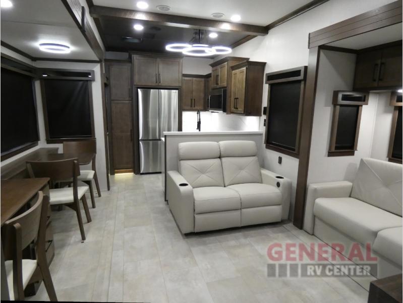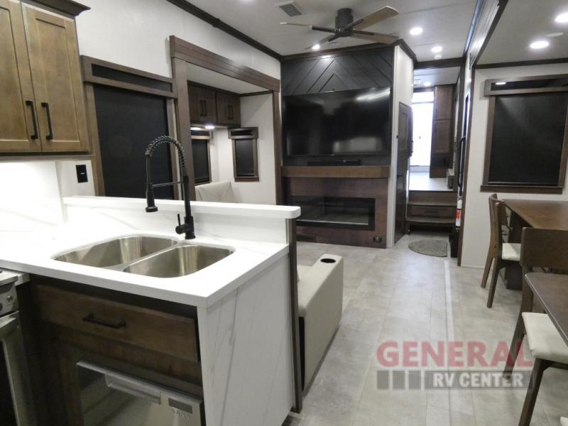 Step inside and experience the elegance of a thoughtfully designed interior that comfortably sleeps four. The RiverStone 39RKFB features a sophisticated layout with premium furnishings and high-end finishes that create a warm and inviting atmosphere. The well-appointed kitchen, complete with modern appliances and generous counter space, allows you to prepare gourmet meals with ease. The luxurious master suite offers a tranquil retreat with a plush king-size bed and ample storage, ensuring restful nights wherever your journey takes you.