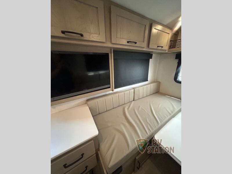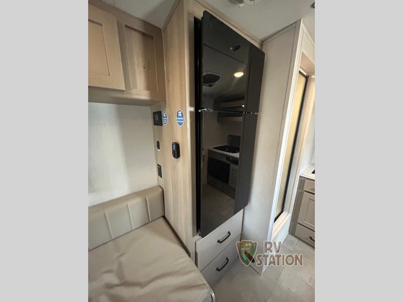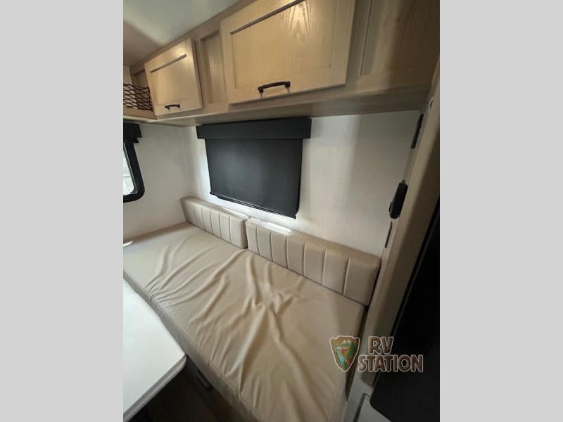 Despite its petite size, this travel trailer is packed with features to ensure a comfortable journey. It comfortably sleeps two, making it perfect for couples or solo travelers who appreciate a cozy retreat after a day of exploration. The interior is thoughtfully designed to maximize space and functionality, offering all the essentials you need for a home away from home. Whether you're whipping up a meal in the compact kitchen or unwinding in the snug sleeping area, you'll find everything you need within arm's reach.
