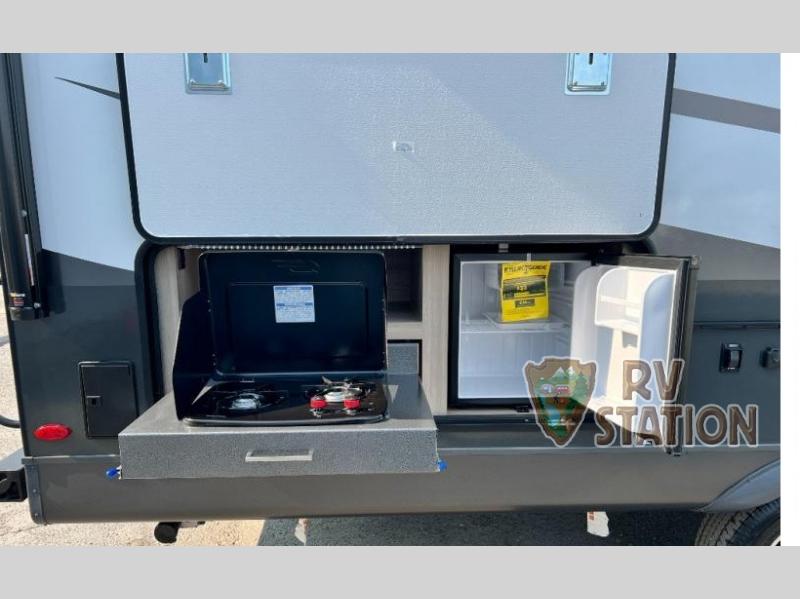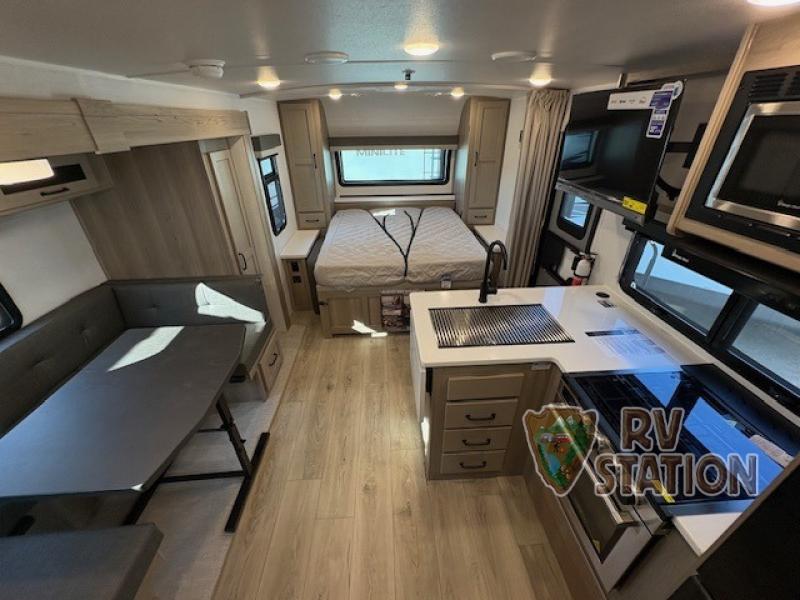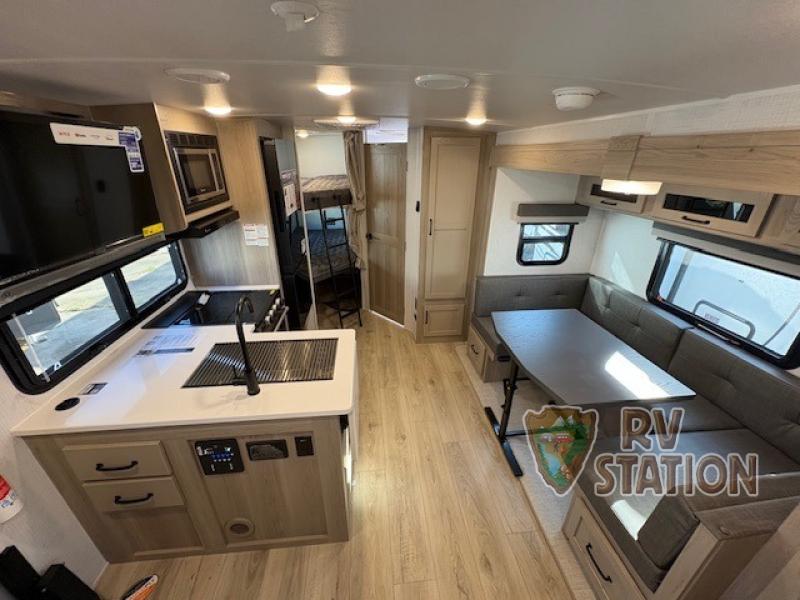 The Rockwood Mini Lite 2509S features a single slide-out that expands your living space, providing extra room for relaxation and entertainment. Inside, you'll find a well-appointed interior with modern amenities to ensure a comfortable stay. The kitchen is equipped with essential appliances, allowing you to prepare meals with ease. The sleeping arrangements are versatile, with a queen-sized Murphy bed, bunk beds, and convertible dinette and sofa beds, ensuring everyone has a cozy place to rest.