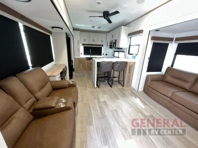 Discover the ultimate in luxury and comfort with the 2025 Forest River RV Sierra 3800RK Fifth Wheel. This stunning RV is designed for those who crave adventure without compromising on the comforts of home. With an impressive length of 37 feet, this RV offers ample space for relaxation and entertainment. Its four slide-outs expand your living area, providing a spacious and inviting atmosphere perfect for family gatherings or quiet evenings under the stars.