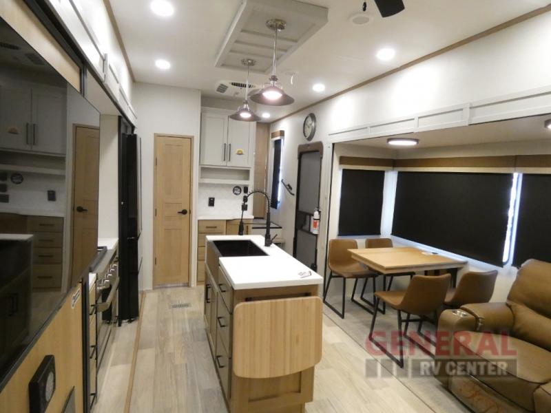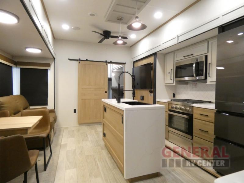 Weighing in at approximately 6,312 kilograms, the Sierra 3880BH is built with a robust construction that guarantees durability and stability on the road. The thoughtful design and engineering of this fifth wheel ensure a smooth towing experience, making it an ideal choice for both seasoned RV enthusiasts and newcomers alike. The interior is meticulously crafted, featuring high-quality materials and finishes that exude sophistication and comfort. From the spacious living area to the well-appointed kitchen and cozy sleeping quarters, every aspect of this RV is designed with your convenience in mind.