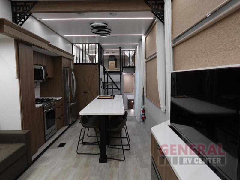 The Wildwood Grand Lodge 44VIEW is engineered to accommodate up to seven people, ensuring that everyone has a cozy place to rest after a day of adventure. Its thoughtful layout includes a master bedroom, additional sleeping areas, and a well-appointed living room, all designed to maximize comfort and convenience. The RV's robust construction, weighing in at 6,619 kilograms, ensures stability and durability, making it a reliable companion for your travels.