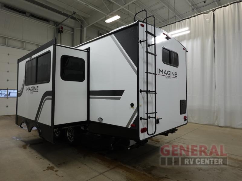 Step inside to find a spacious interior enhanced by a single slide-out, creating an inviting living space that feels much larger than its compact footprint suggests. The Imagine 2300MK is thoughtfully designed to sleep two, offering a cozy retreat for couples or solo adventurers. The interior boasts modern amenities and stylish finishes, ensuring you enjoy every moment spent inside. From the fully equipped kitchen to the comfortable seating area, every detail has been considered to provide a seamless living experience on the road.