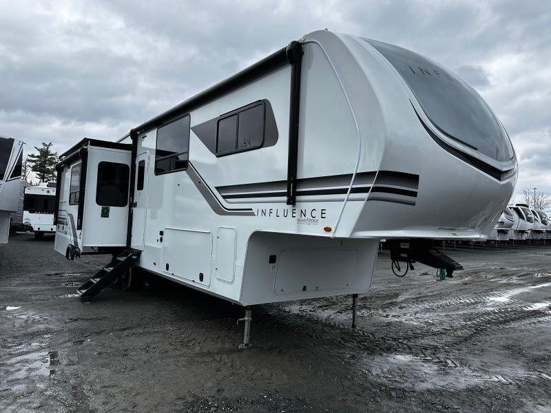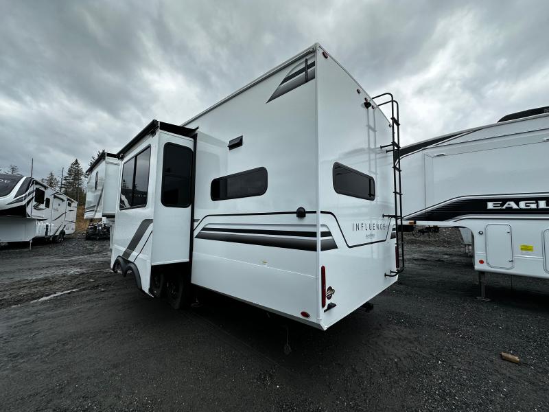 Built with quality and durability in mind, the Grand Design Influence FW 3203GK features a robust construction and advanced insulation, providing comfort in any climate. The exterior is equally impressive, with a large awning for outdoor relaxation and plenty of storage compartments for all your gear. With a dry weight of approximately 4,500 kilograms and a hitch weight of around 1,000 kilograms, this fifth wheel is designed for easy towing. Whether you're a seasoned traveler or new to the RV lifestyle, the 2025 Grand Design Influence FW 3203GK offers everything you need for unforgettable adventures on the road.