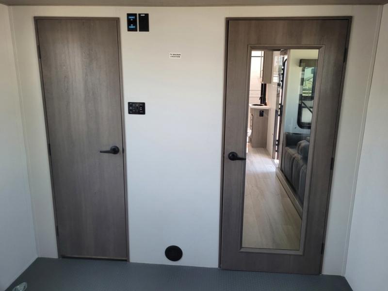 Step inside, and you'll find a cozy haven that comfortably sleeps four. Perfect for family getaways or a road trip with friends! The two slide-outs create a spacious interior, giving you room to relax after a day of adventure. The kitchen is well-equipped for whipping up your favorite meals, and the living area is perfect for unwinding with a movie or a good book. The bathroom is compact yet functional, ensuring you have all the comforts of home while you're on the road.