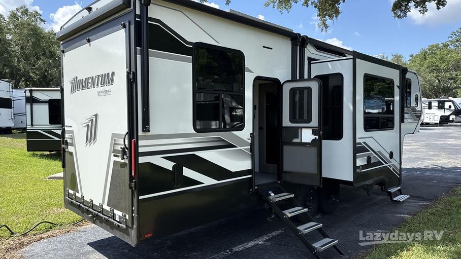 Discover the ultimate in luxury and adventure with the 2025 Grand Design Momentum G-Class 320G Fifth Wheel. This exceptional RV is designed for those who crave comfort and style on the road. With a length of 30 feet, this spacious fifth wheel offers ample room for the whole family. Its three slide-outs expand your living space, providing a roomy interior that can comfortably sleep up to five people. Whether you're embarking on a weekend getaway or an extended road trip, this RV ensures you travel in style and comfort.