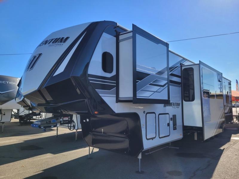 The Momentum M-Class 392M features three expansive slide-outs, creating a spacious interior that can comfortably accommodate up to five guests. Whether you're traveling with family or friends, this RV ensures everyone has their own space to relax and unwind. The thoughtfully designed floor plan includes a master suite, a cozy living area, and a fully equipped kitchen, making it a true home away from home. The high-quality finishes and modern amenities reflect Grand Design's commitment to excellence, ensuring a luxurious experience on the road.
