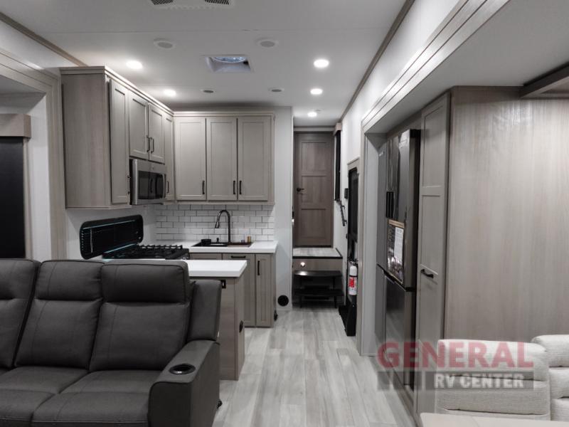 Inside, you'll find a well-appointed interior with modern amenities to enhance your travel experience. The spacious living area, fully-equipped kitchen, and cozy sleeping quarters make it easy to enjoy life on the road. Whether you're embarking on a weekend getaway or an extended road trip, the 2025 Grand Design Momentum M-Class 414M Fifth Wheel offers the perfect blend of comfort, convenience, and adventure-ready features. Don't miss the opportunity to own this exceptional RV and create unforgettable memories with your loved ones.