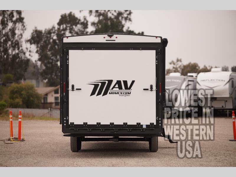 This Toy Hauler is engineered to accommodate up to six occupants, making it ideal for families or groups of friends. The interior is thoughtfully designed to maximize space and comfort, ensuring a restful retreat after a day of exploration. The Momentum MAV boasts a spacious living area, a fully equipped kitchen, and a well-appointed bathroom, all crafted with high-quality materials and meticulous attention to detail. Every aspect of this RV is designed to provide a home-like experience, no matter where your journey takes you.