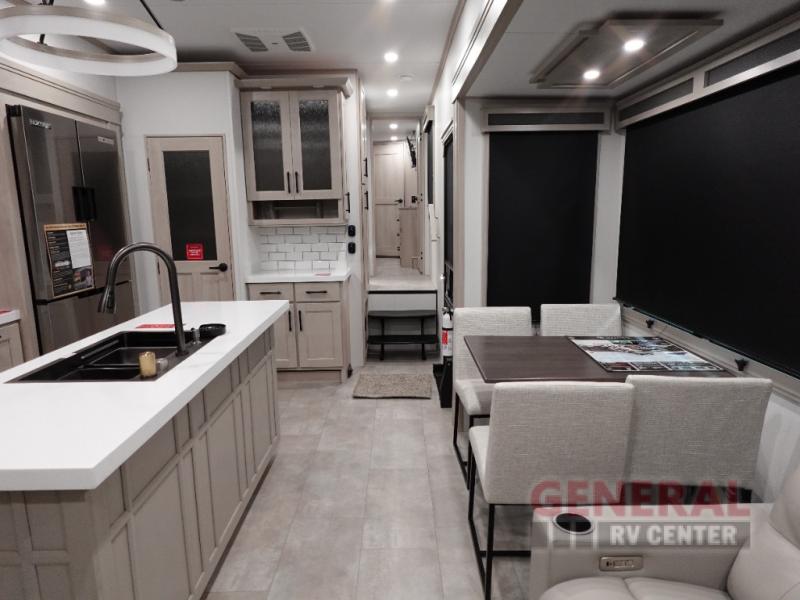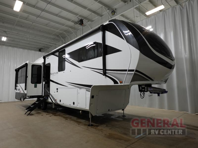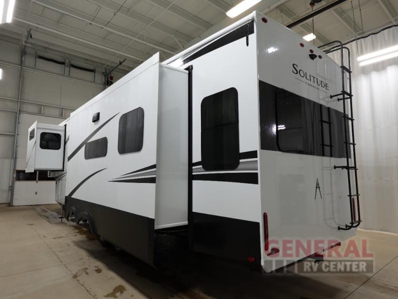 This beauty boasts three slide-outs, giving you extra room to stretch out and relax. Whether you're planning a weekend escape or a cross-country road trip, the Solitude 370DV has you covered. It comfortably sleeps four, making it perfect for small families or couples looking to explore the great outdoors in style. The interior is designed with modern amenities and high-quality finishes, ensuring you feel right at home no matter where you park.