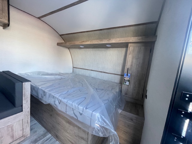 Inside, you'll find a cozy setup that comfortably sleeps three. The smart layout maximizes space, offering a comfy sleeping area, a functional kitchenette, and a compact bathroom. Whether you're whipping up a quick meal or settling in for a good night's sleep, this trailer has got you covered. The interior design is modern and inviting, making it a home away from home wherever you park it.