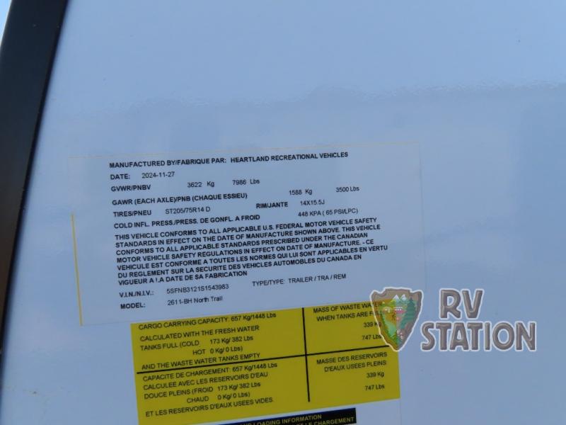 Weighing in at approximately 2,801 kilograms, this travel trailer is built for easy towing without compromising on durability or stability. Its robust construction and aerodynamic design ensure a smooth and efficient journey, whether you're navigating winding mountain roads or cruising along the open highway. The 2025 Heartland North Trail 2611-BH is more than just a travel trailer; it's your gateway to unforgettable adventures and cherished memories. Don't miss the opportunity to own this exceptional RV, where every journey becomes a new story waiting to be told.