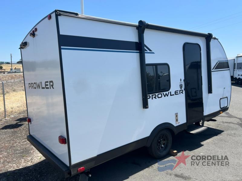 Step inside to experience a thoughtfully designed interior that maximizes every square meter of space. The Prowler 17RBLX features a cozy sleeping area that comfortably accommodates up to four people, thanks to a versatile layout that includes a convertible dinette and a plush queen-sized bed. The fully equipped kitchen boasts a two-burner stove, a microwave, and a refrigerator, allowing you to prepare delicious meals wherever your journey takes you. Ample storage solutions, including overhead cabinets and a spacious wardrobe, ensure you can bring along all your essentials without compromising on space.
