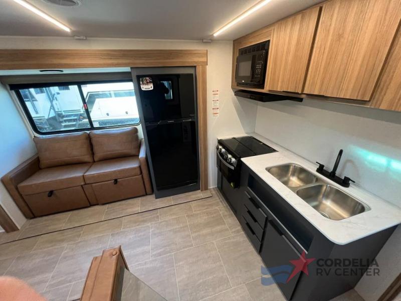 The Heartland Trail Runner 261BHS features one strategically placed slide-out, expanding the living area to provide ample space for relaxation and entertainment. Inside, you'll find a thoughtfully designed floor plan that maximizes every inch of space. The interior boasts high-quality finishes and modern amenities, ensuring a comfortable stay no matter where your travels take you. The sleeping arrangements include a master bedroom, bunk beds, and convertible seating areas, offering flexibility and comfort for all occupants.