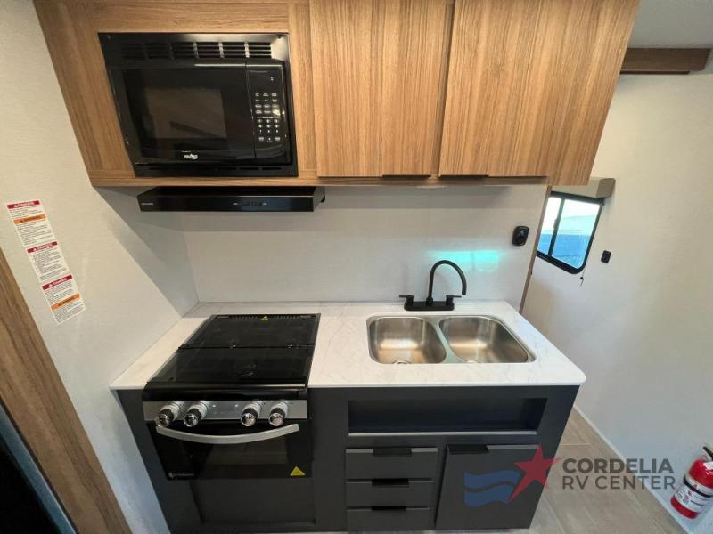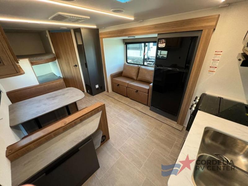 The Trail Runner 261BHS features a single slide-out, maximizing interior space to provide a roomy and comfortable living area. Inside, you'll find a well-appointed kitchen equipped with all the essentials, a cozy dining area, and a spacious lounge for relaxation. The sleeping arrangements are versatile, with a master bedroom, bunk beds, and convertible seating areas, ensuring everyone has a comfortable place to rest after a day of adventure.